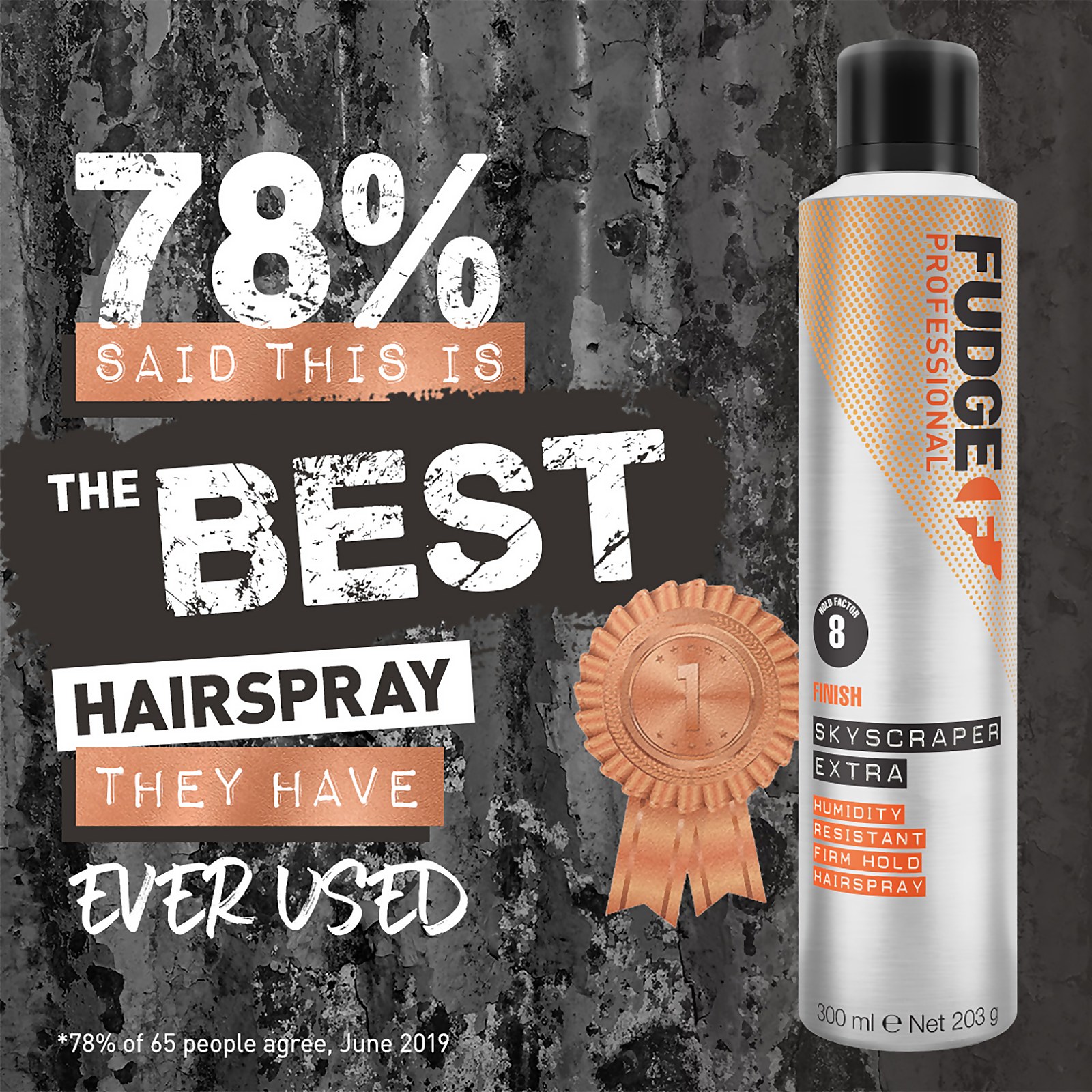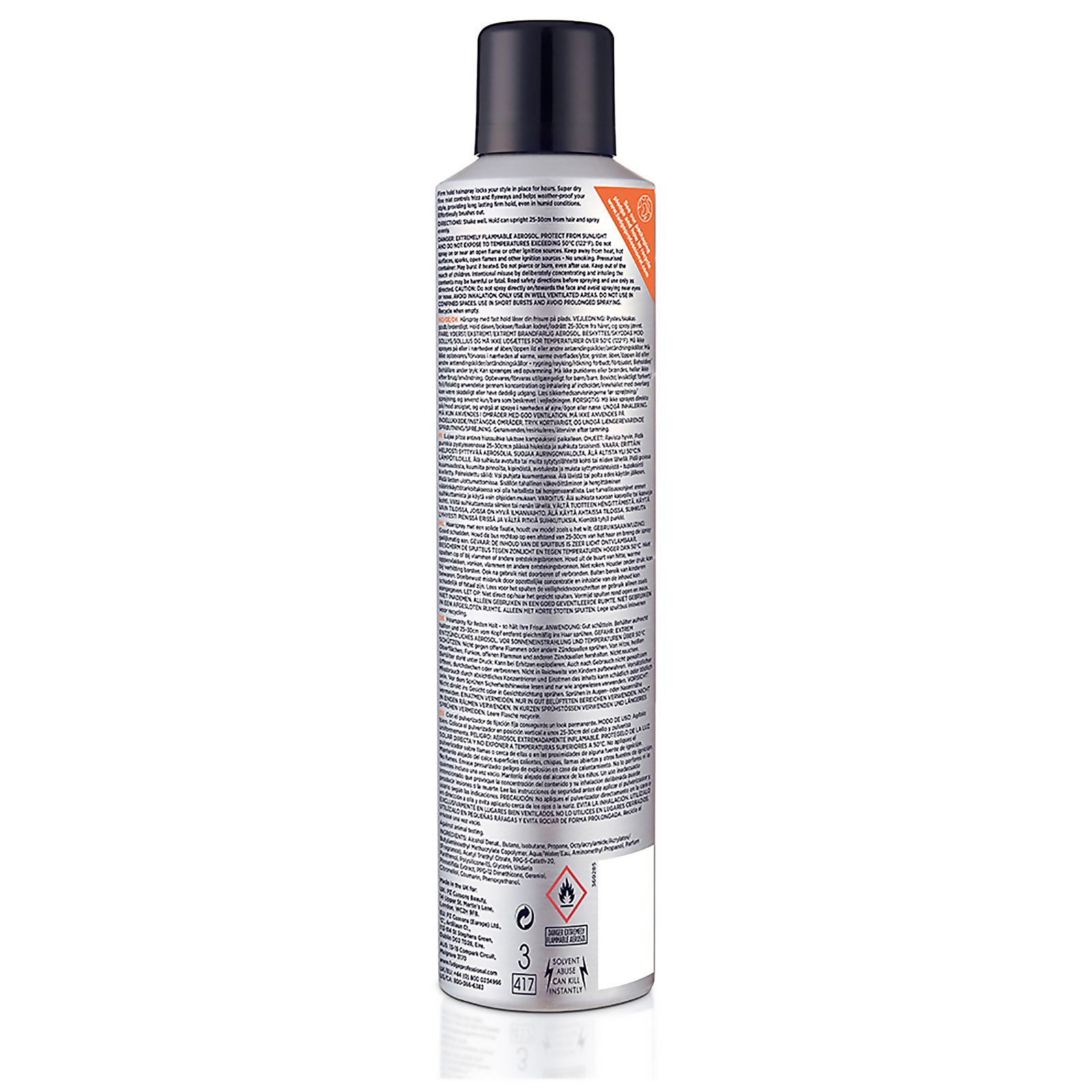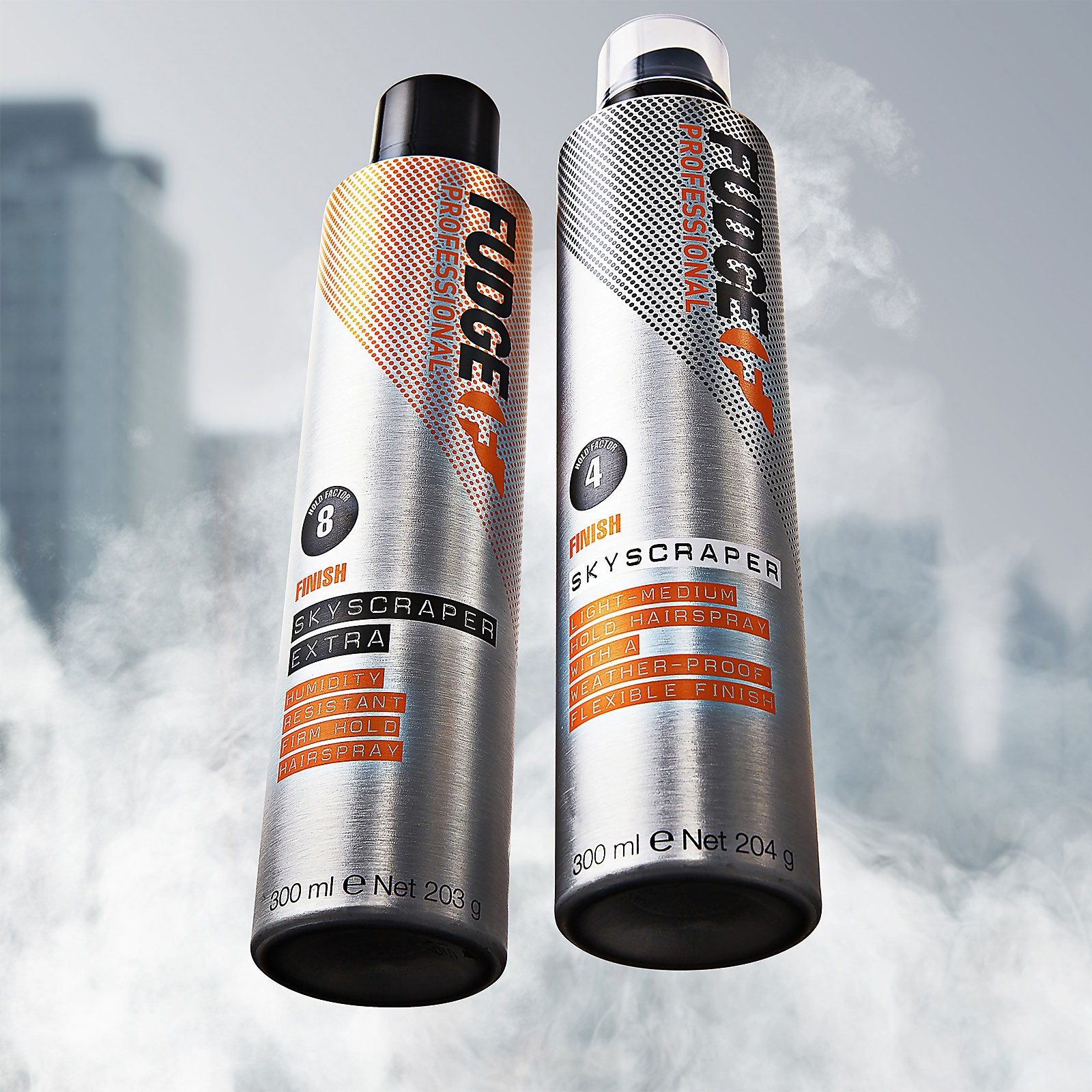 Fudge Professional Skyscraper Extra; our firm hold hairspray which locks your style in place for hours. This super-dry fine mist controls frizz and flyaways and helps weather-proof your style, providing long-lasting firm hold even in humid conditions. The hairspray effortlessly brushes out of your hair.